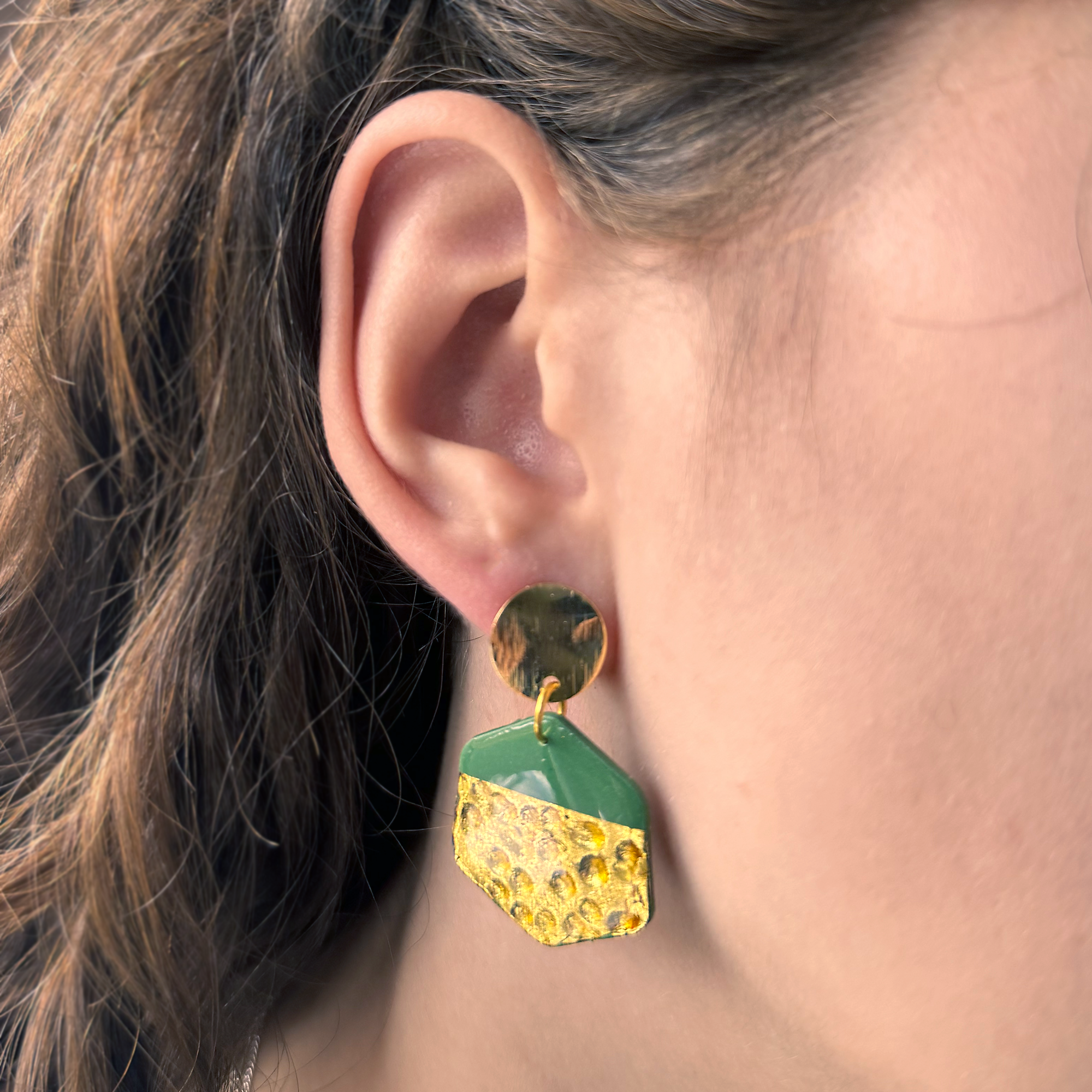 – Handmade with ultra lightweight Polymer Clay, gold leaf and resin earrings