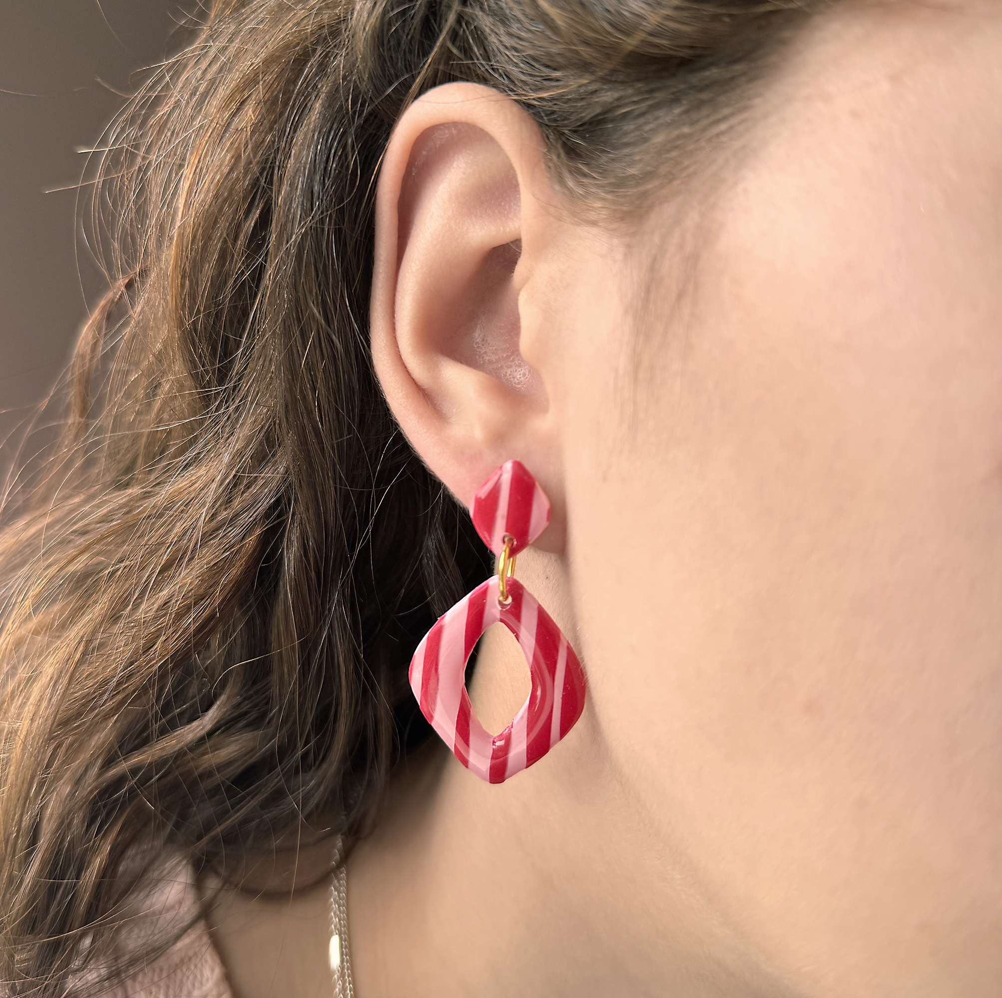 Discover the perfect dangly earrings with our Holly Go Lightly drop earrings. These characterful earrings showcase a delightful pink and red colourway, accented with subtle striping that catches the light beautifully. Designed to inspire fun and a touch of playful glamour. They sway elegantly with every movement, adding a lively pop of colour to any outfit. Lightweight yet eye-catching, they are ideal for both daytime wear and evening occasions. Whether you’re dressing up for a party or simply brightening up your everyday look, Holly Go Lightly brings the charm! Also, they effortless bring a hint of sophistication and whimsy to your jewellery collection.